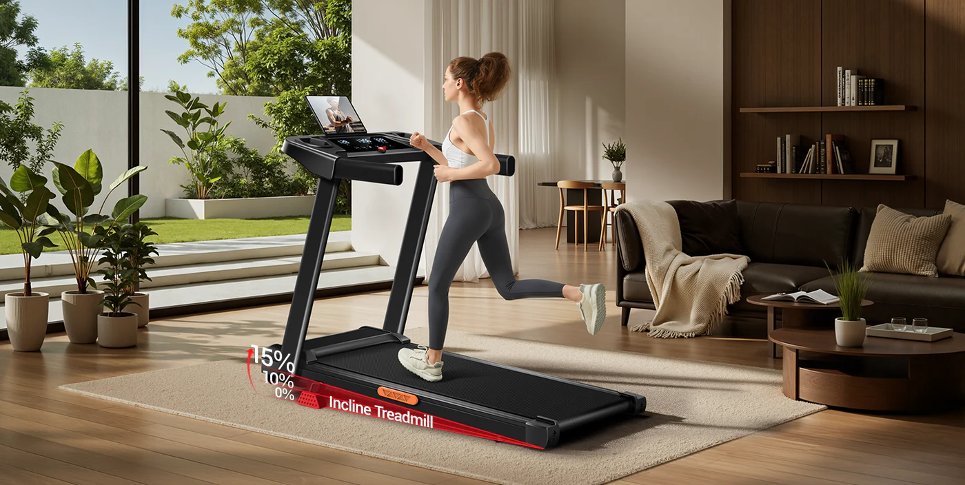 Foldable Treadmill with 10%/15% Incline for Home and Office