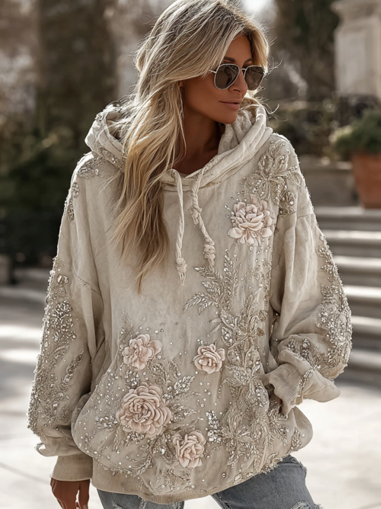 Bohemian Beaded Rose Romantic Casual Round-neck Long-sleeved Sweater