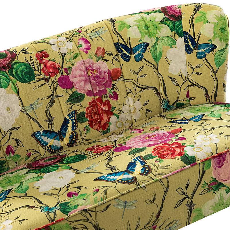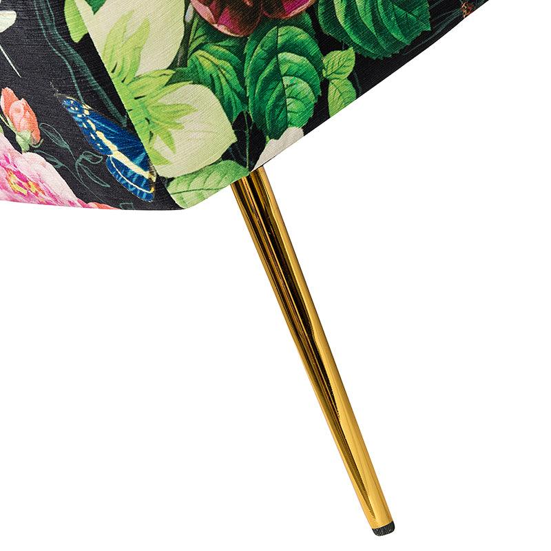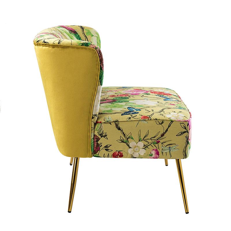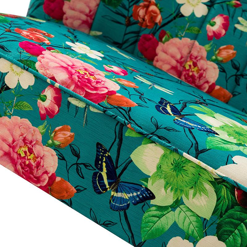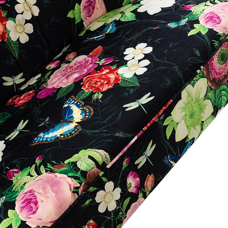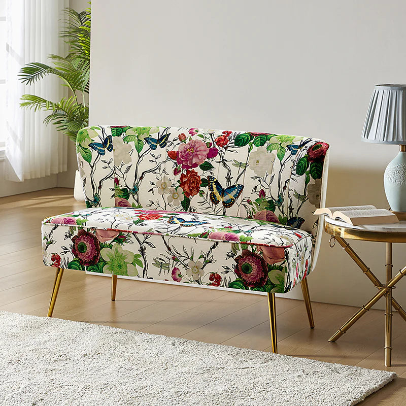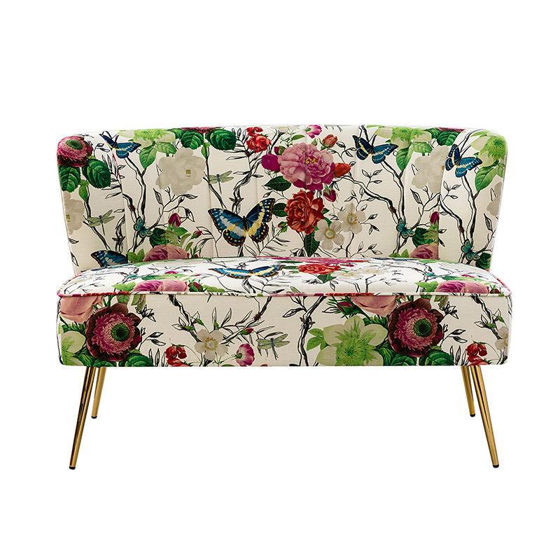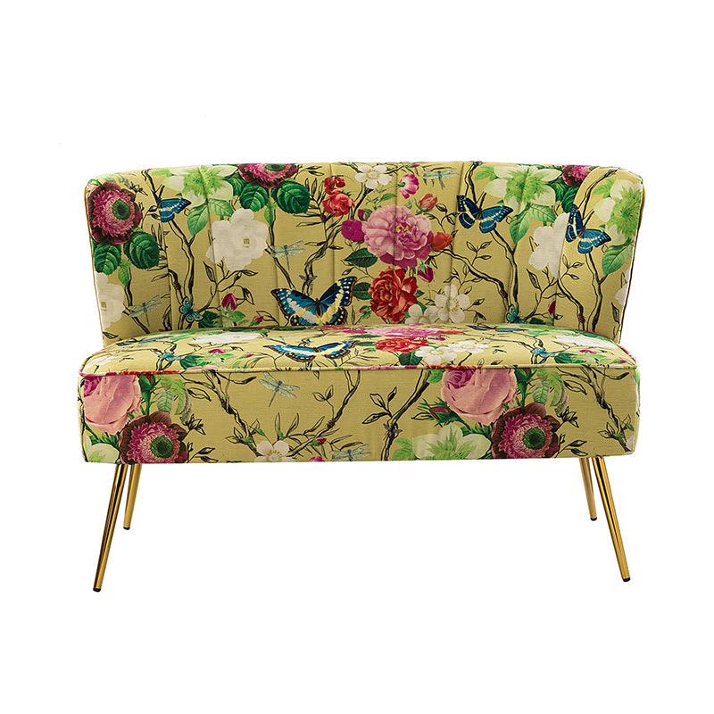 The exceptional design of this contemporary loveseat lets you create an intimate conversation area or a charming seating arrangement. The high-grade foam filling with a solid and manufactured wood frame showcases a perfect combination of comfort and support. Wrapped in a cozy fabric with dramatic floral patterns dotted, this remarkable loveseat features a channel-tufted back and plated metal legs, adding an incomparable glamor to your living spaces. Have no problems blending into your home decoration with unique characters and incredible durability. It's where quality meets great looks, suitable for bedroom, living room, and other scenes.