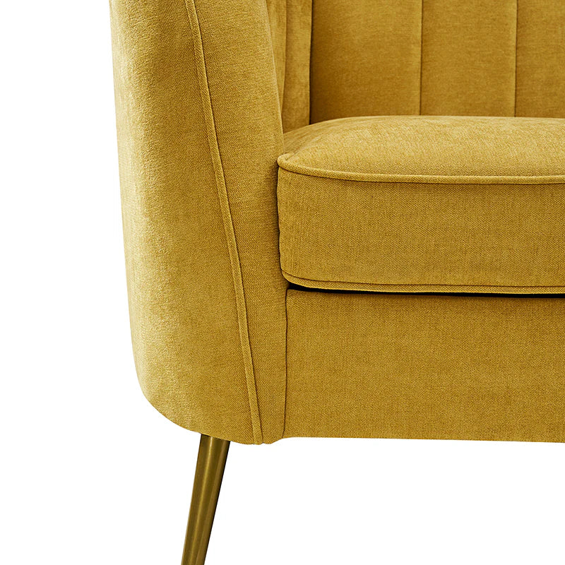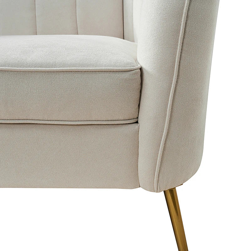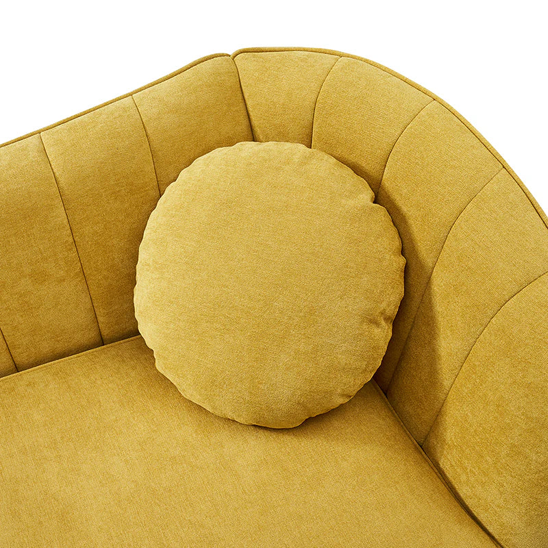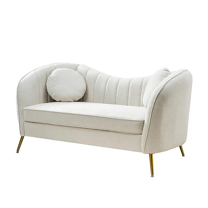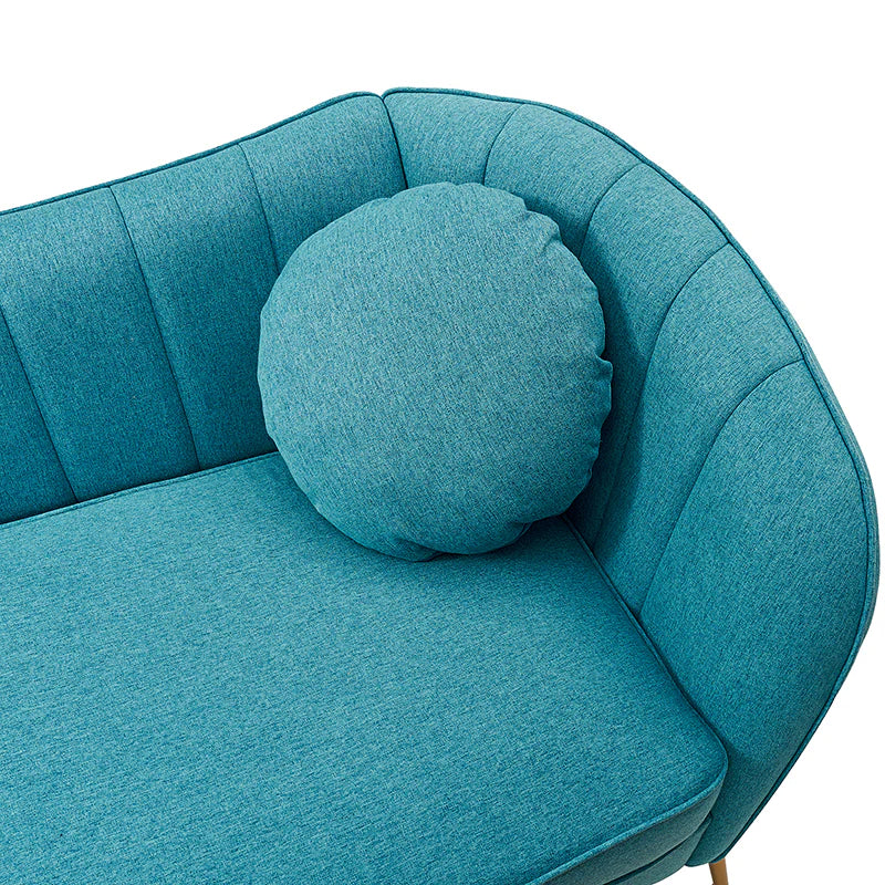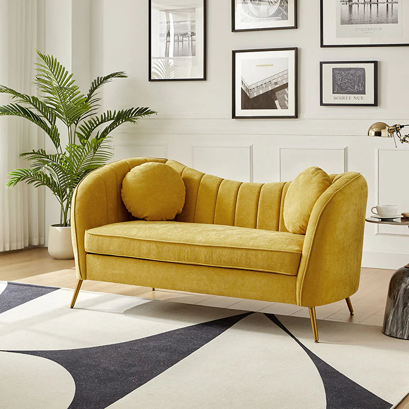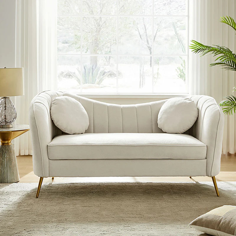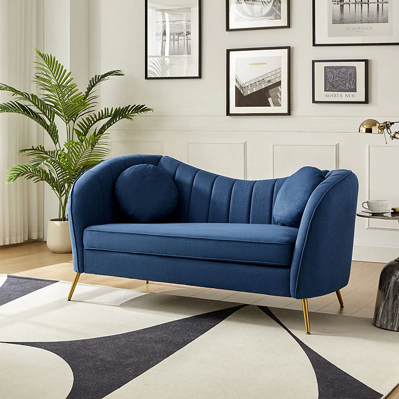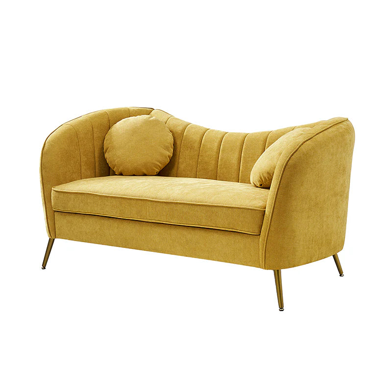 This contemporary loveseat features premium polyester upholstery that is both classy and sumptuous against your skin. A single seat cushion and round arms curve into a low, special back, creating a perfect, modern piece for your home. Gold metal legs support this loveseat and provide a stunning contrast to the soft fabric. The cushion is filled with high-density foam, which will not easily get deformed, giving you an enjoyable rest experience, like falling into the cotton or lying in the clouds. Two soft pillows add more comfort to it. You will love this loveseat, whether you're stretching out after a long day at work, enjoying a movie night, or engaging in a discussion with your friend, this loveseat supports the sweet time of being at home with the one you love.