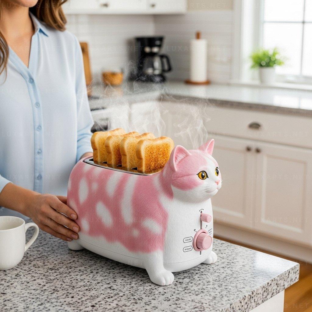 It is not just a toaster, but a happy daily companion! 😊🐱💖 Breakfast can also be very loving 🥰🍞☀️. With it, every day can start with a smile! 😄✨🐾