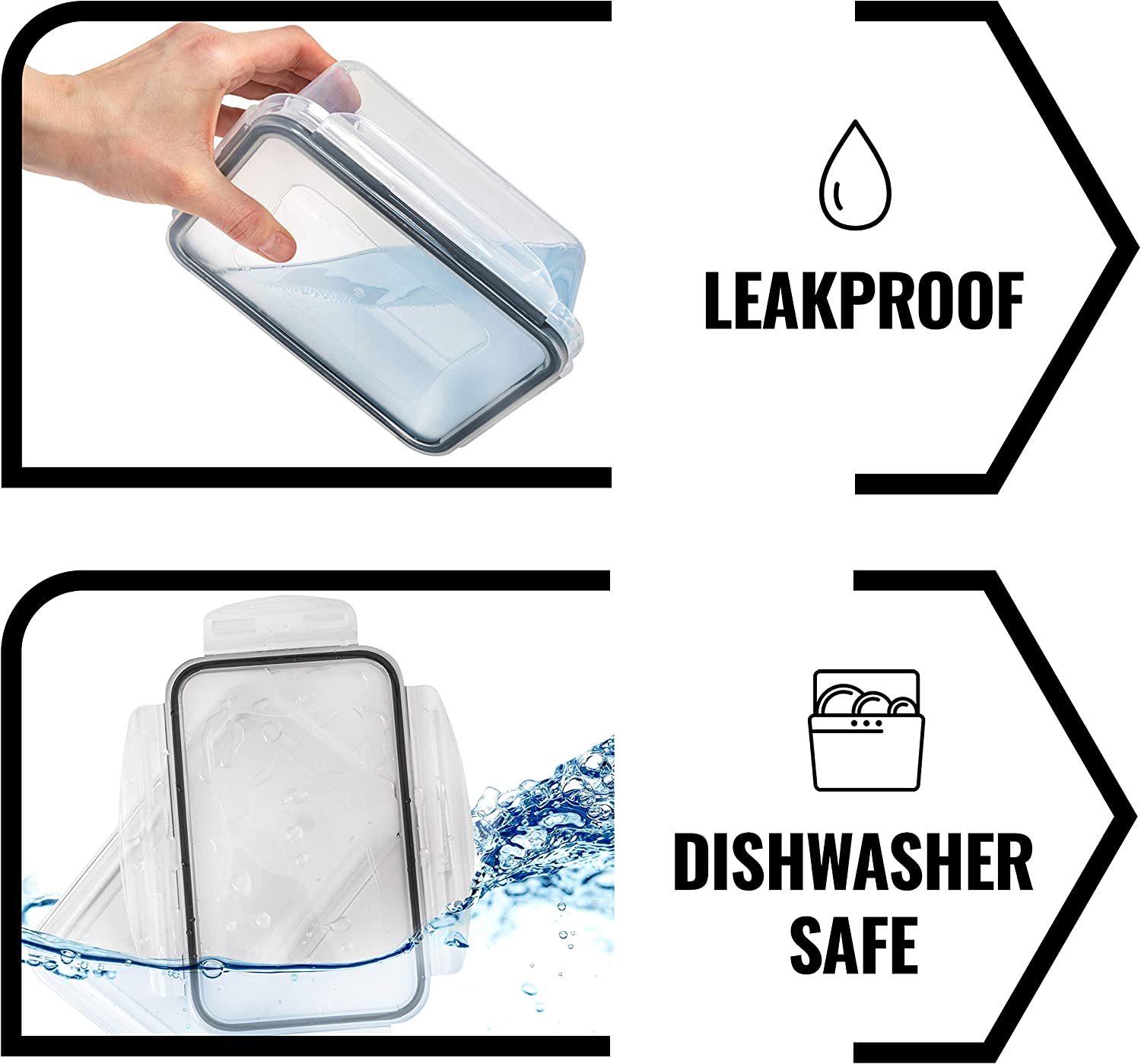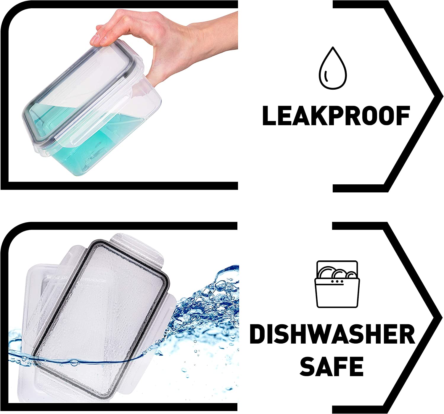 Keine Verschüttungen mehr - Das auslaufsichere 4-Scharnier-Verschlusssystem bildet eine luftdichte, wasserdichte Dichtung zwischen Behälter und Deckel. Sie können Suppen und Saucen in Ihrer Tasche transportieren, ohne sich um Verschüttungen sorgen zu müssen.