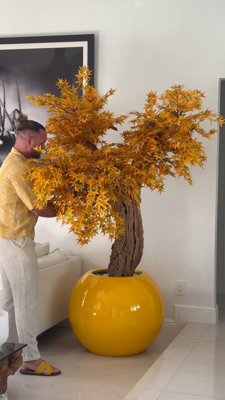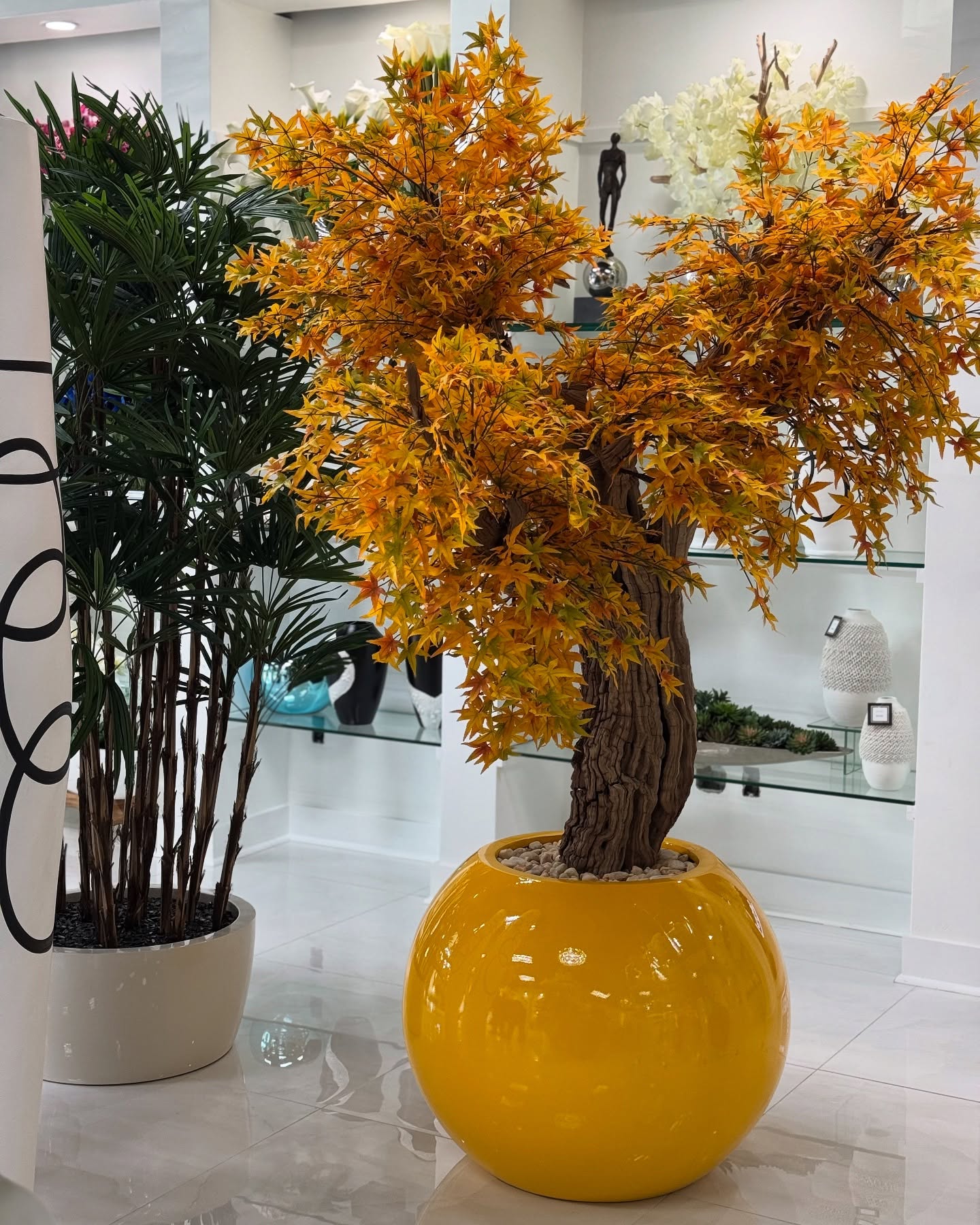 Bring the warmth of autumn into your space with our stunning Golden Maple Tree, elegantly paired with a high-gloss Dax L yellow planter. This artificial maple tree features vibrant golden-yellow leaves and a natural-looking textured trunk, adding a sophisticated touch to any interior or exterior setting.