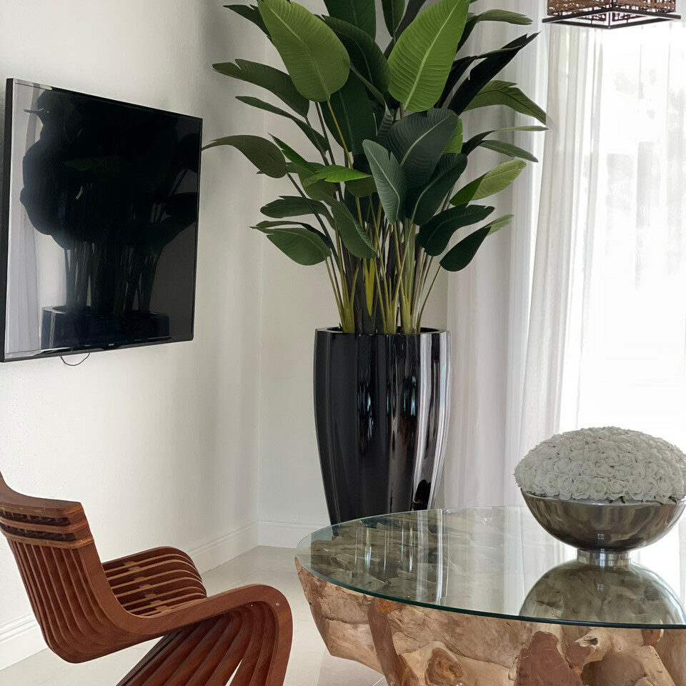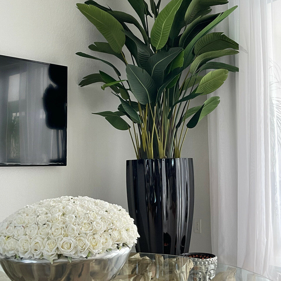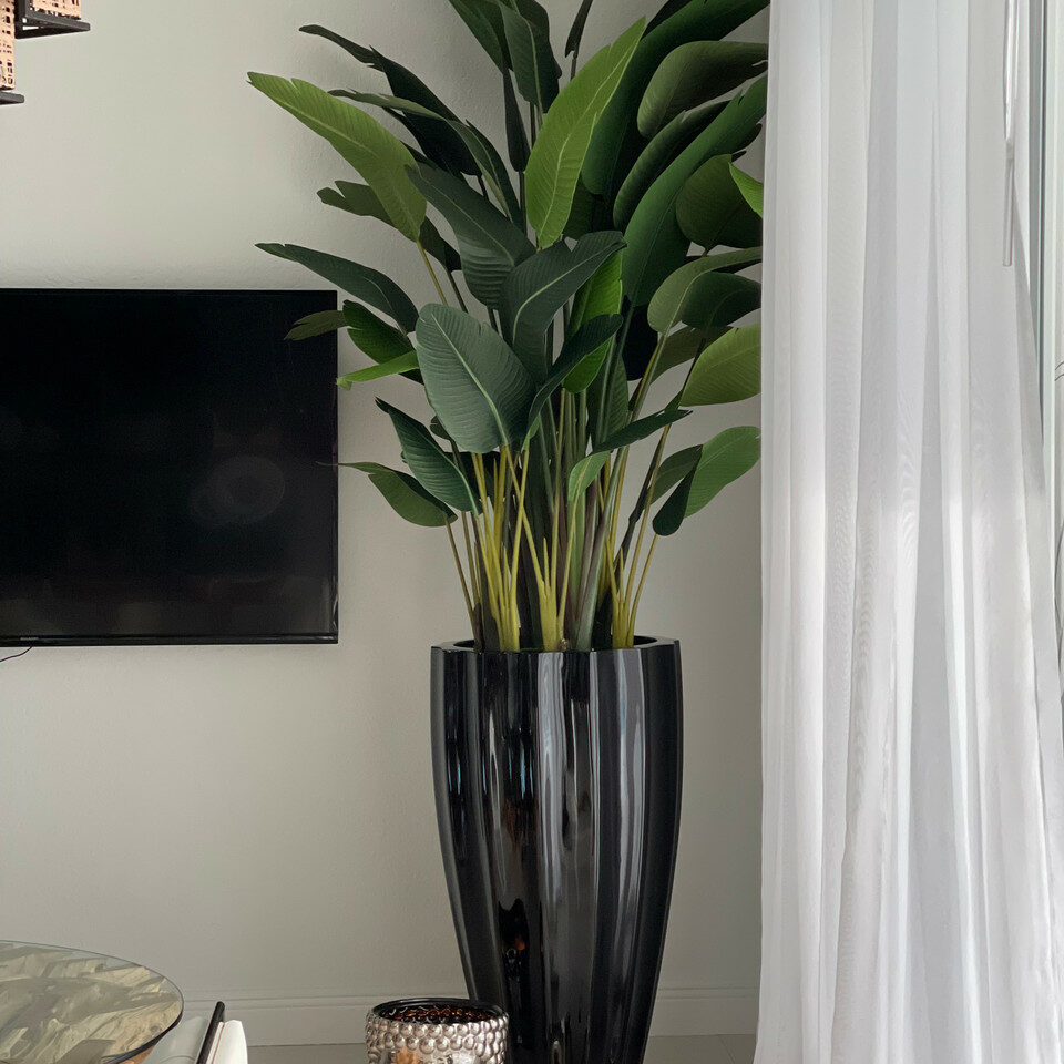 This versatile tree is inspired by the beautiful and legendary traveler’s palm native to Madagascar. Because of its long stems and spectacular fronds, the tree is believed to be part banana plant and part palm.  The San Jose fluted planter paired with our lusciously full Bird of Paradise will add a look of sophistication and glamor, evoking the highest sense of elegance in a any room. With a long fluted bottom and a wide mouth, these slim round pots offer just the right amount of decorative flair and practicality. Due to the fascinatingly elegant design, our San Jose plant pot can be subtly incorporated into both traditional and modern settings.
