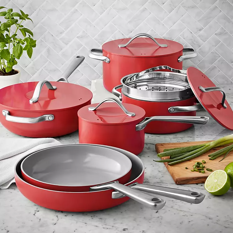 Superior Nonstick Cookware – Unlike traditional nonstick cookware, this set of pots and pans features ceramic nonstick interiors made without harmful chemicals like PTFE, PFOS or PFOA. Now you can enjoy superior nonstick performance with high release and easy cleaning after every meal. The impact-bonded honeycomb base makes this set safe for all stovetops, including induction. Plus, these pans are oven safe up to 450°F—talk about versatile!