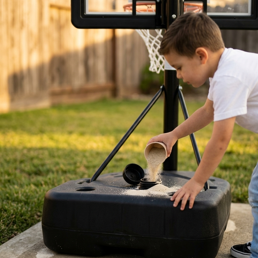 Height adjusts from 3.2 to 7.2 ft in 10 seconds flat no tools, no frustration. Shatterproof PC backboard, Q195 steel rim, all-weather net. Stable base fills with water or sand. Two built-in wheels so it moves wherever you need it. Pool in summer, garage in winter, backyard in spring.