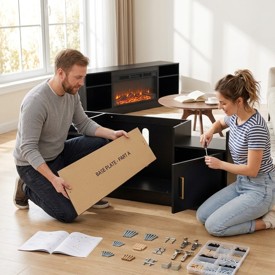 Labeled parts, pre-drilled holes, all hardware included. Two people and you're done.