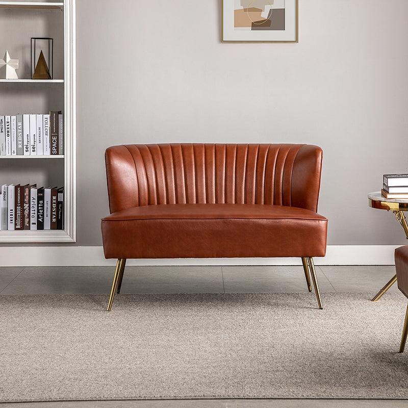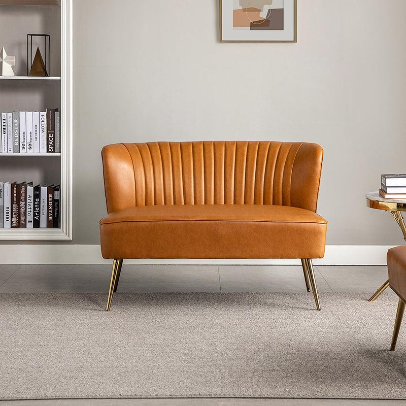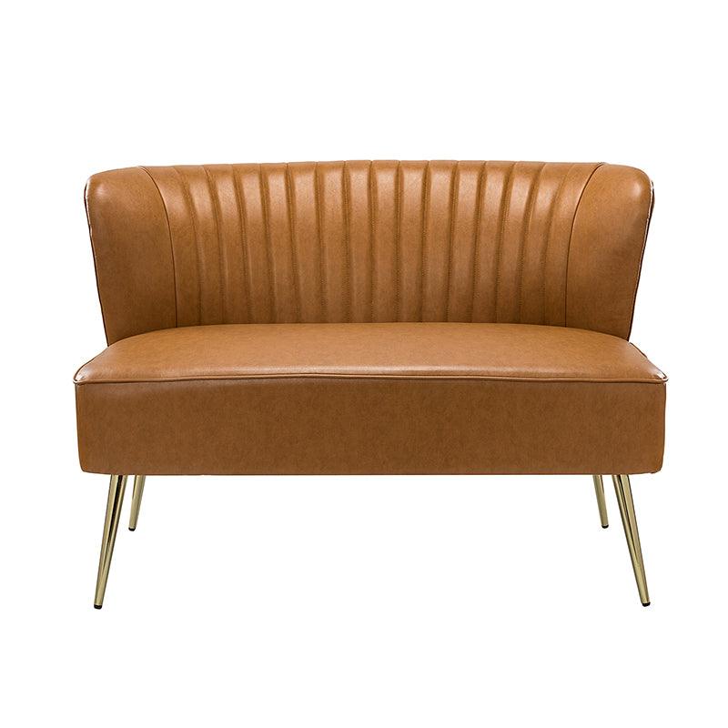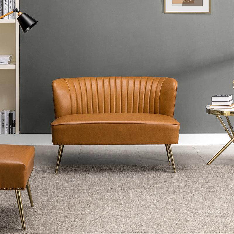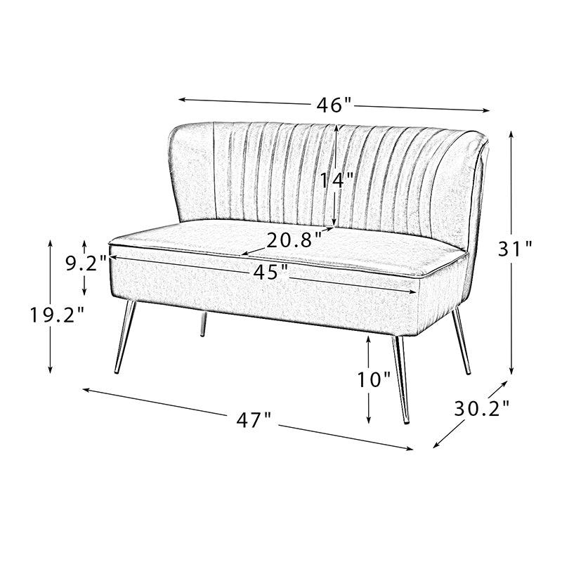 Adding a dash of style to update your home decor with this approachable loveseat. It delivers a comfortable spot for you and your loved one to unwind after a day's work. This loveseat is crafted in soft PU fabric, with sleek lines and a softly tufted backrest adding a touch of elegance. Featuring a wood frame, shiny flared legs, armless silhouettes, and pared-down wing backs for luxurious appeal. Foam filling and springs in the seat give you just the right amount of support as you sit. Whether looking for an intimate conversation with your loved one or a place to stretch out in style, you will be well covered. Expertly crafted, this loveseat offers superb quality at an unparalleled value, ready for many years of enjoyment in your home.