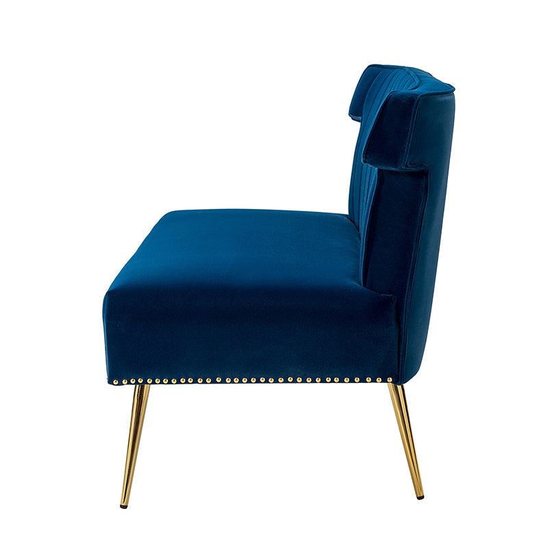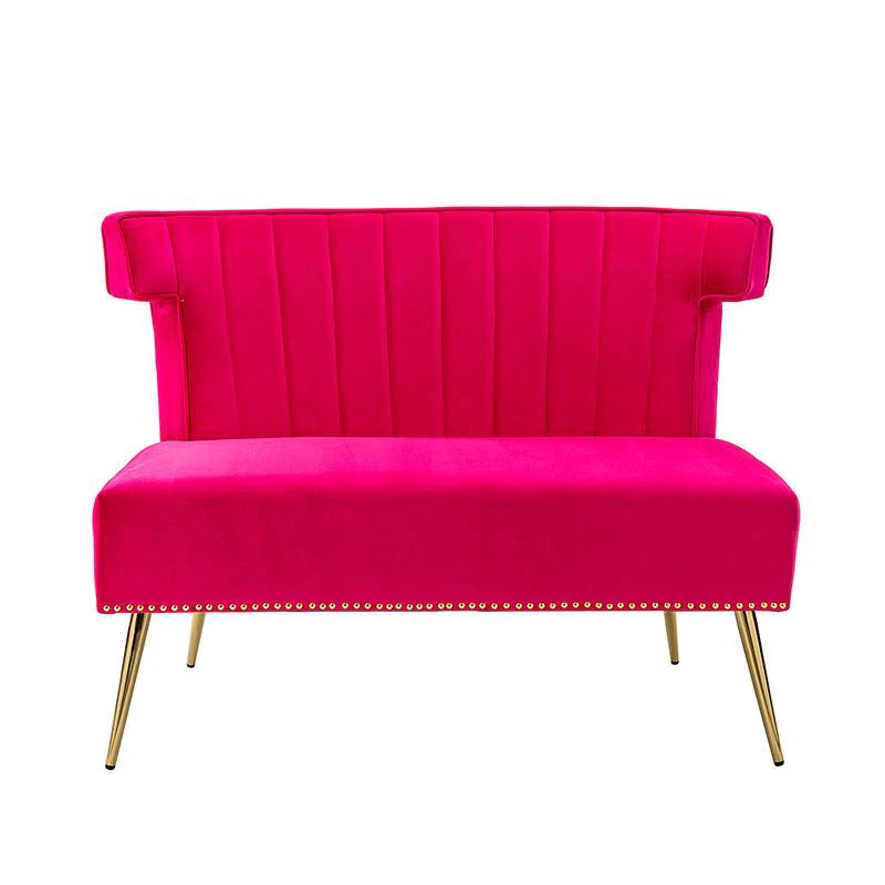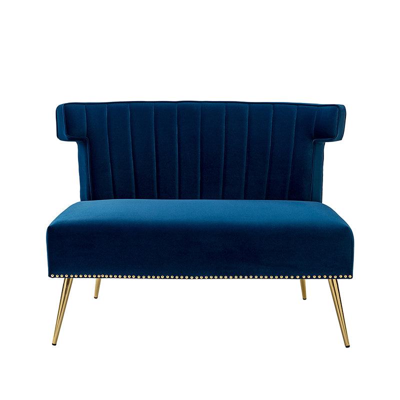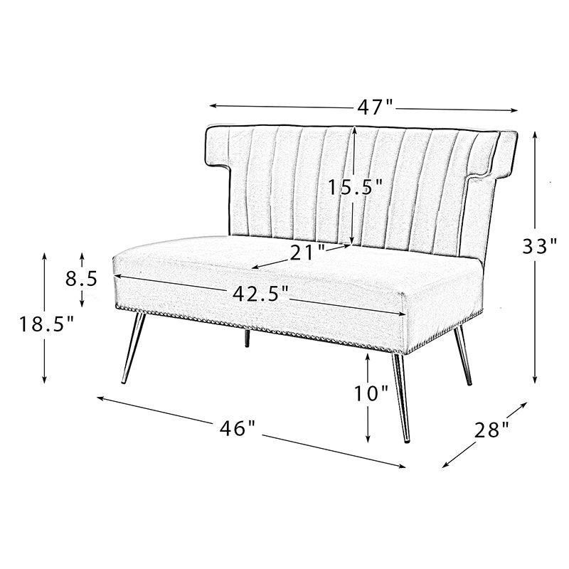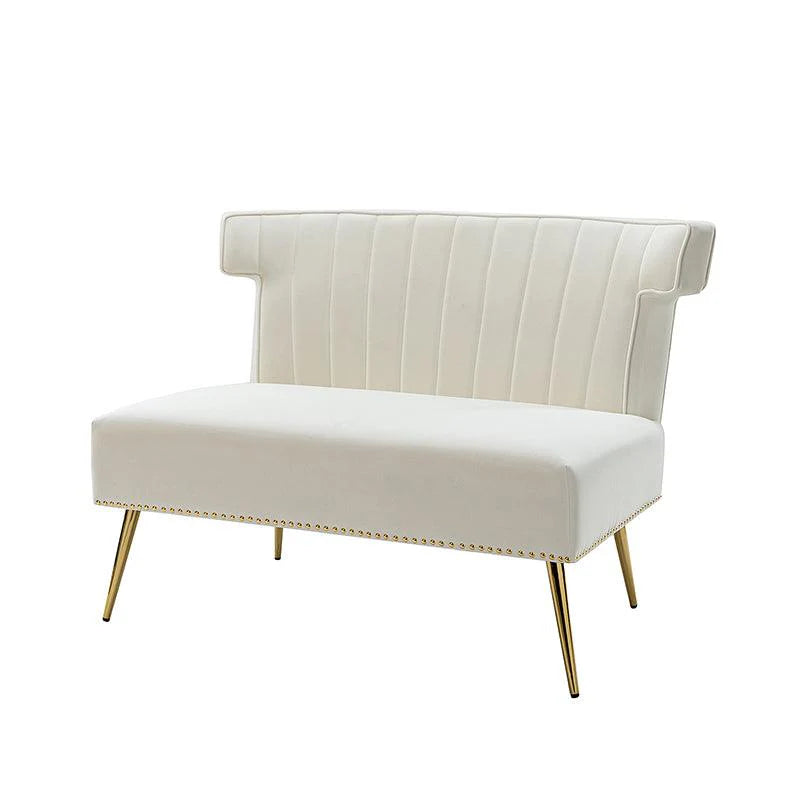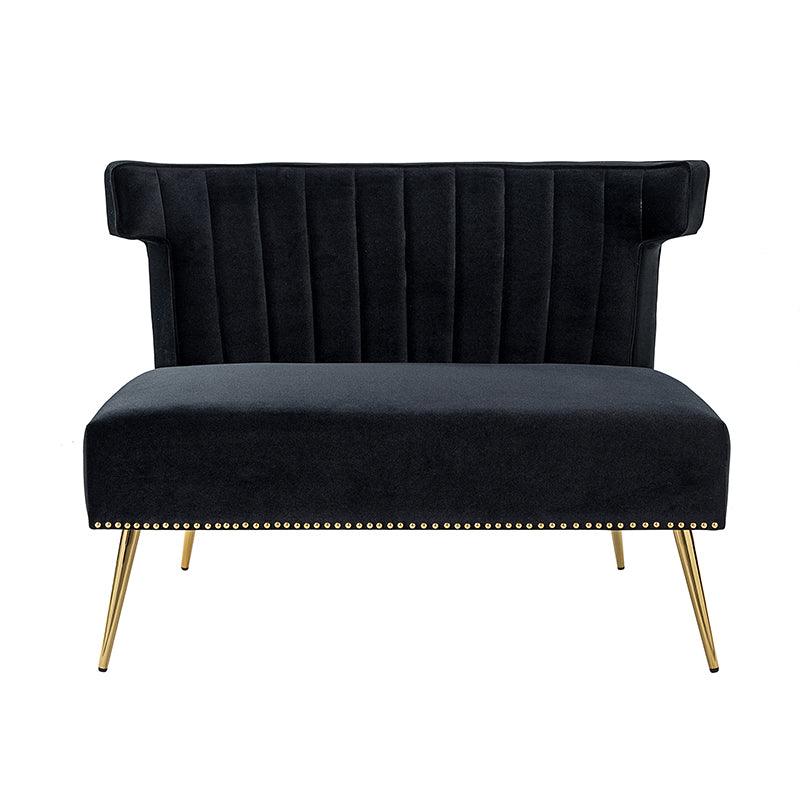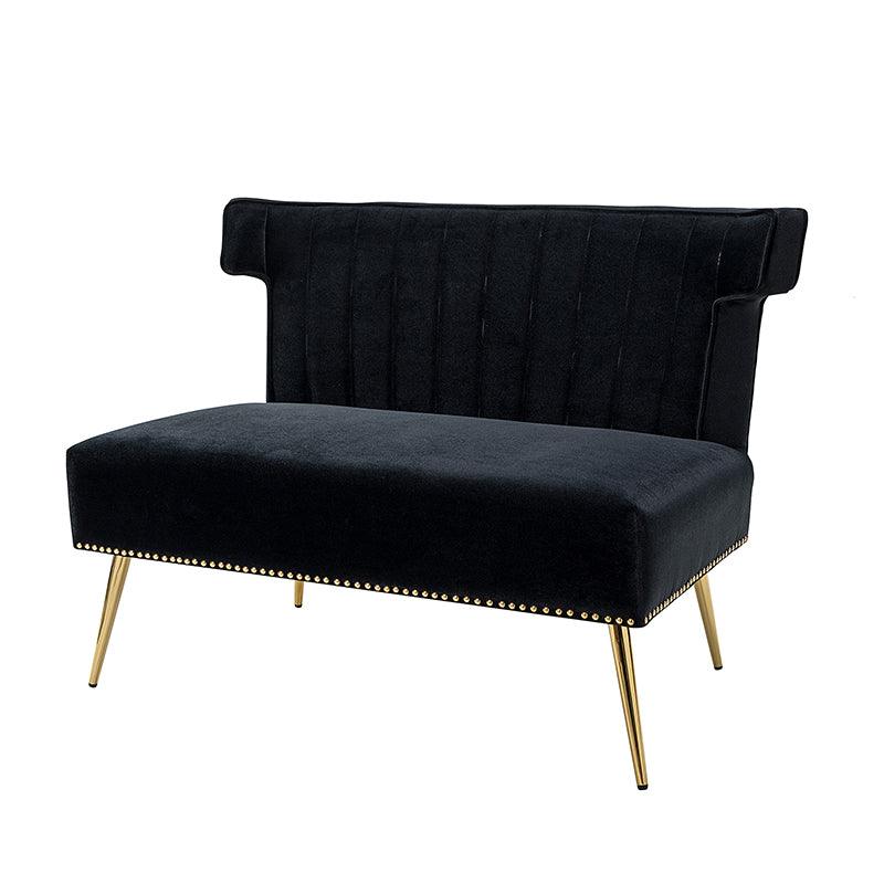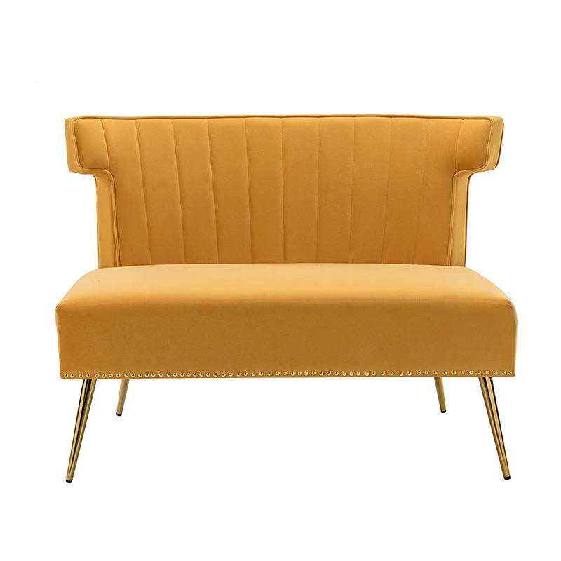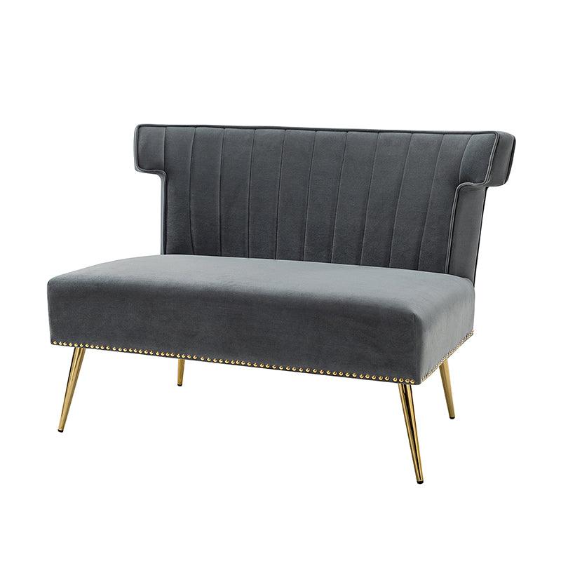 This loveseat brings a delicate silhouette and tailored touch to your living space. This is the classic and contemporary style accent loveseat with glam nail head trim and shiny golden legs. Made with premium velvet fabric, comfortable for skin touch, and features an on-trend solid hue that is bound to blend in with your color scheme. Foam filling and springs in the seat give you just the right amount of support as you sit. This loveseat features an armless design and a channel-tufted back. We love how its wingback style and nail head trim add a refined finish. Use this space-conscious piece as an accent in your living room or spare seating for your bedroom.