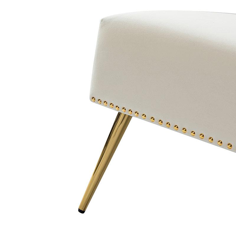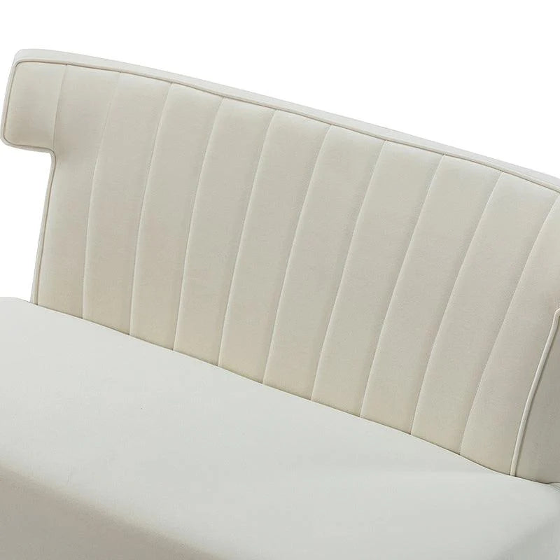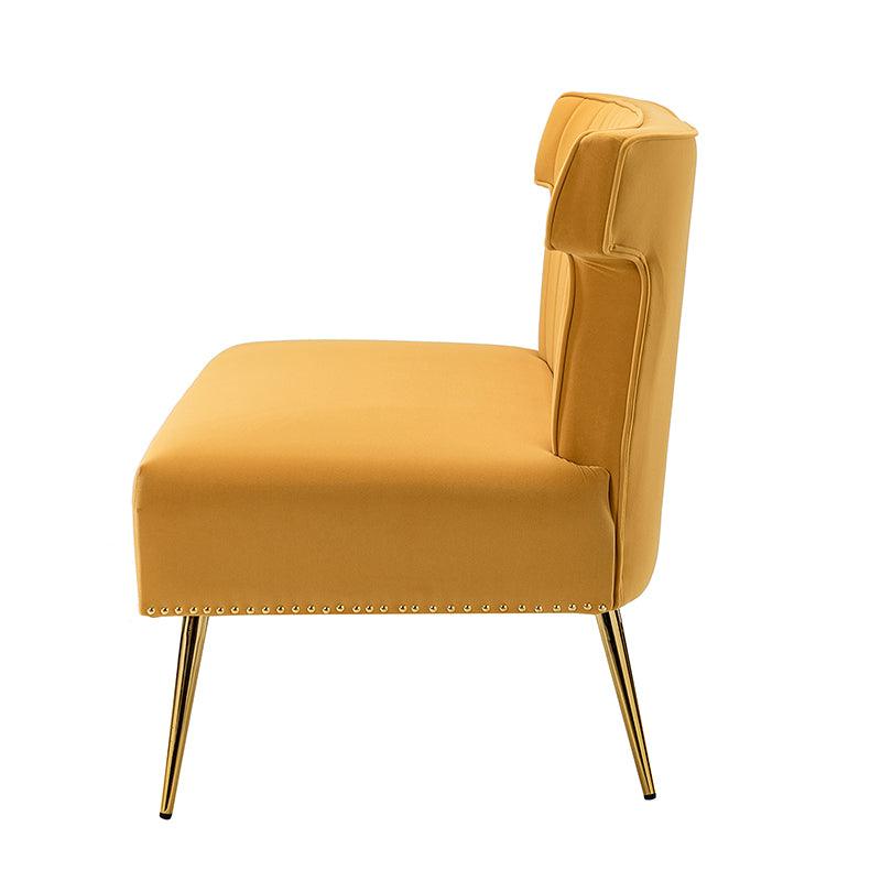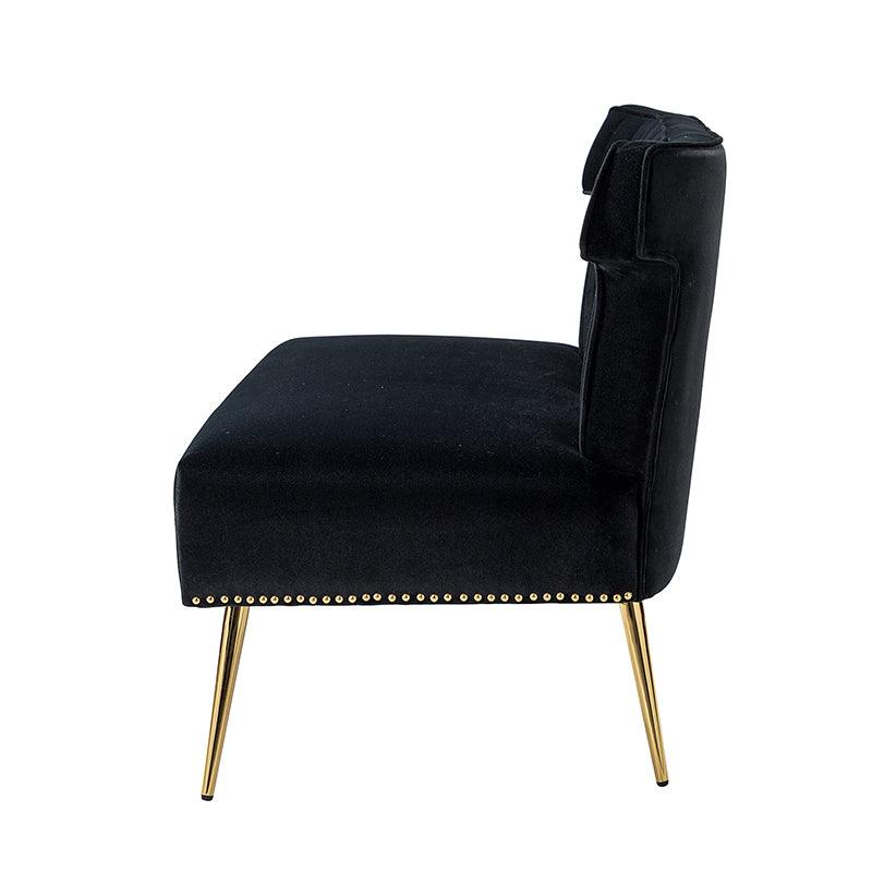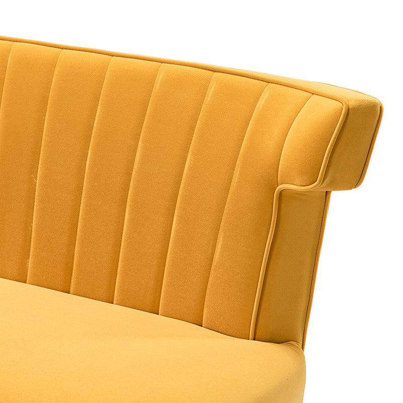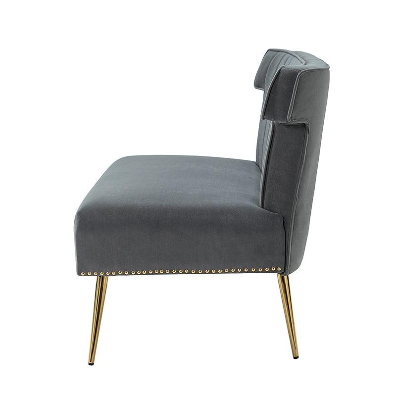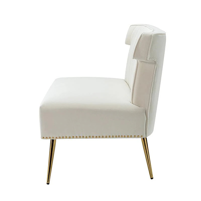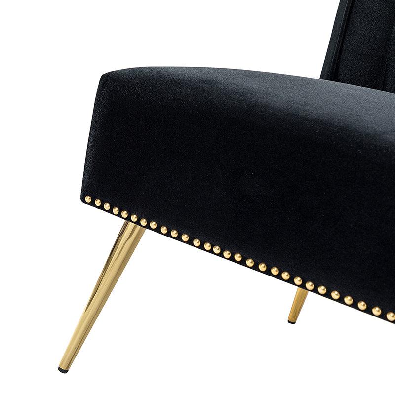 This loveseat brings a delicate silhouette and tailored touch to your living space. This is the classic and contemporary style accent loveseat with glam nail head trim and shiny golden legs. Made with premium velvet fabric, comfortable for skin touch, and features an on-trend solid hue that is bound to blend in with your color scheme. Foam filling and springs in the seat give you just the right amount of support as you sit. This loveseat features an armless design and a channel-tufted back. We love how its wingback style and nail head trim add a refined finish. Use this space-conscious piece as an accent in your living room or spare seating for your bedroom.