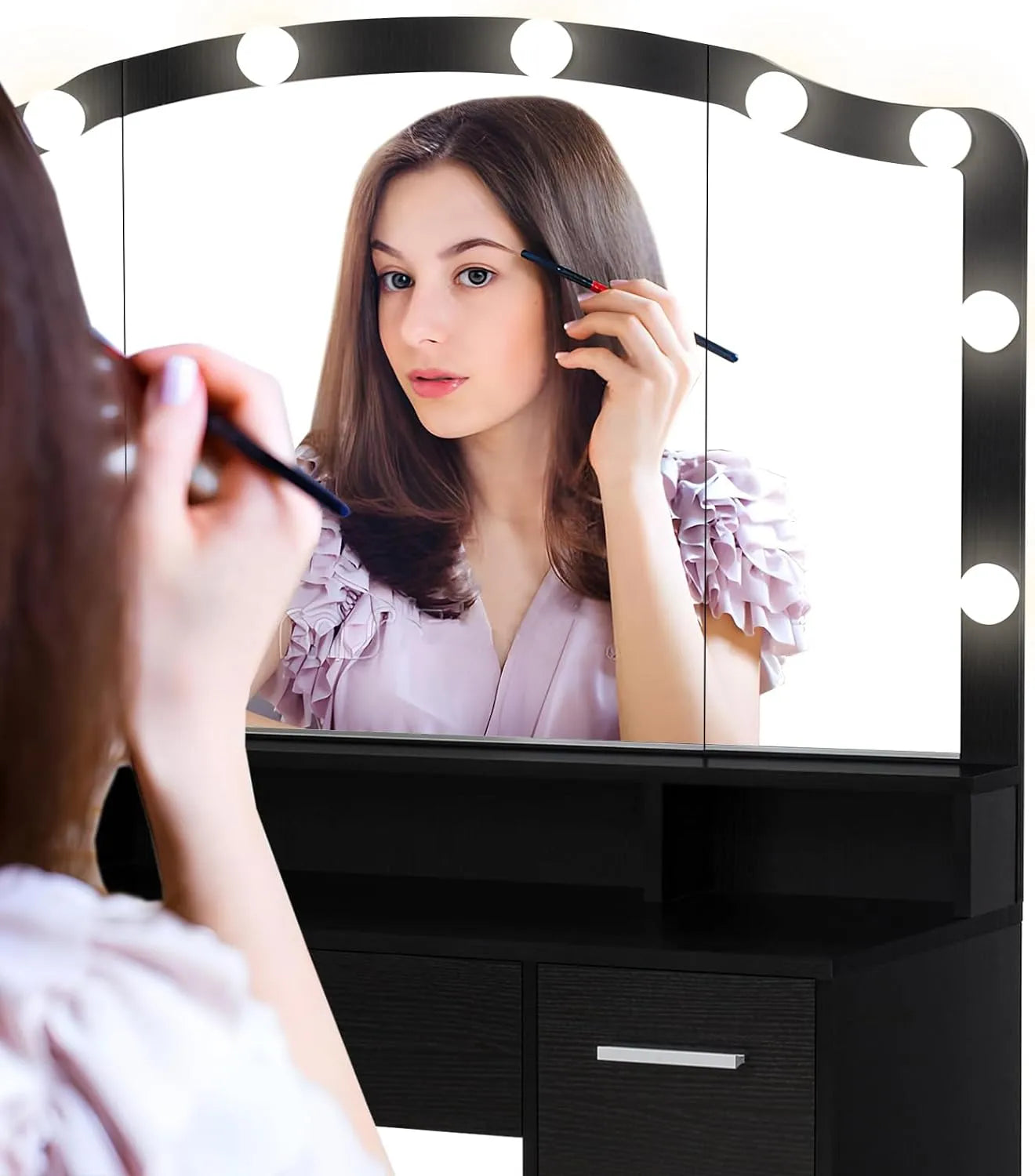 Makeup Vanity with 3-Color Lighting Modes & Brightness Adjustable